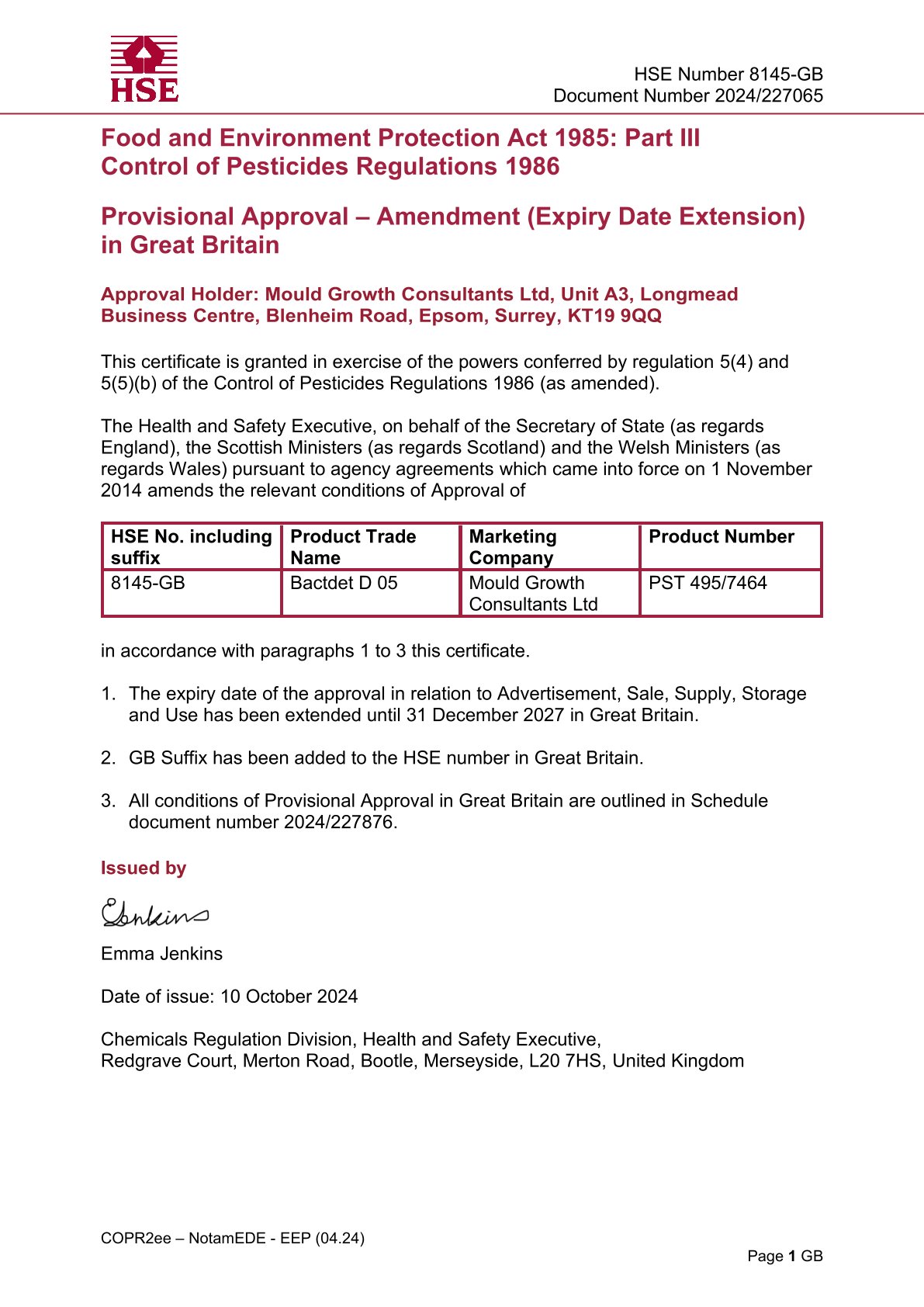 It is essential that wallpapered surfaces are NOT stripped until washed down with BACTDET D 05 to ensure that the spores do not spread throughout the property.