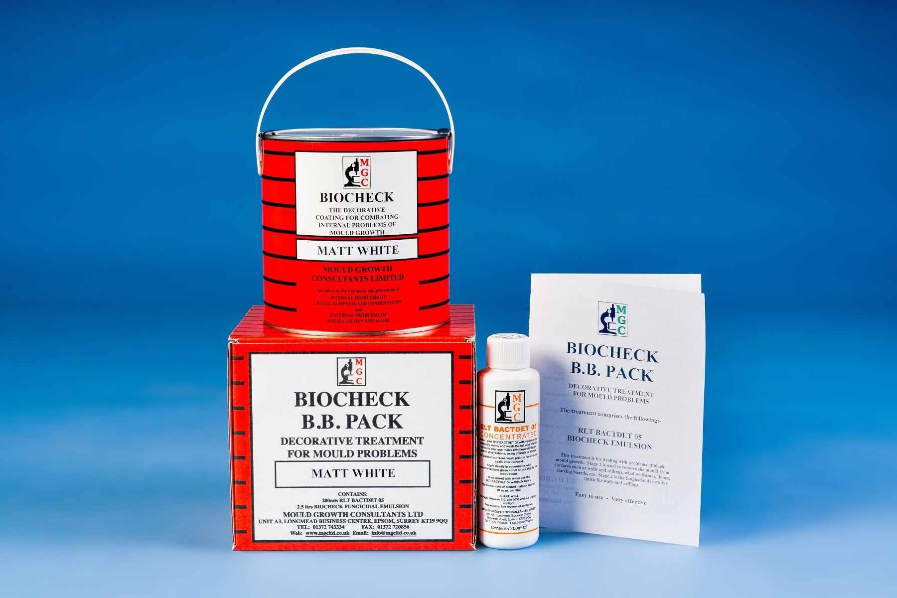 The BIOCHECK BB PACK is available in Matt or Silk and either White or Magnolia. This handy pack of BIOCHECK EMULSION PAINT, contains unique biocides that prevent the growth of mould on walls and ceilings even in properties suffering from extreme condensation. It has been developed specifically for use in kitchens and bathrooms, the areas where the maximum amount of condensation is generated.