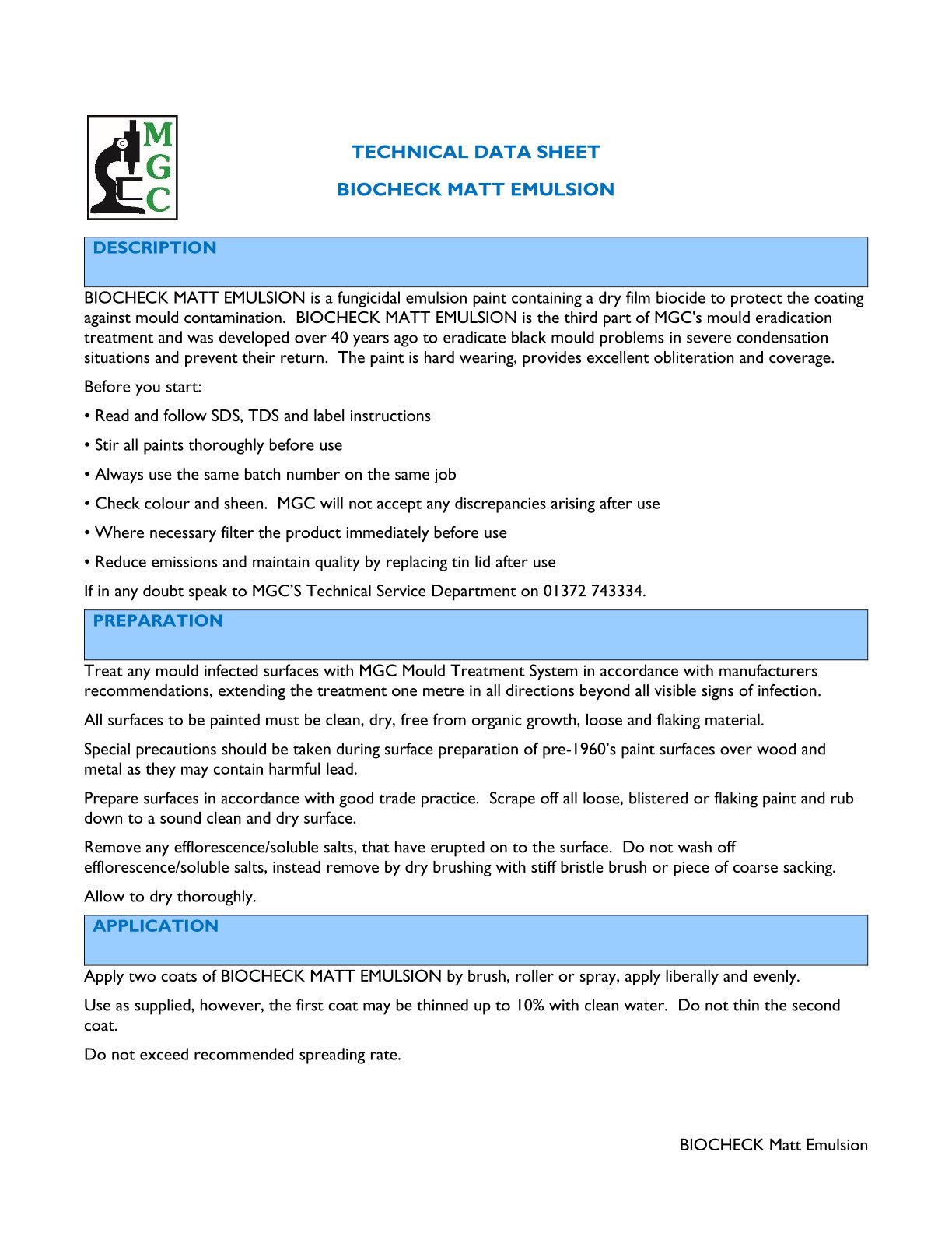 Tests carried out by the Building Research Advisory Service show the long term effectiveness of BIOCHECK EMULSION PAINT in preventing the return of mould on surfaces prone to condensation.