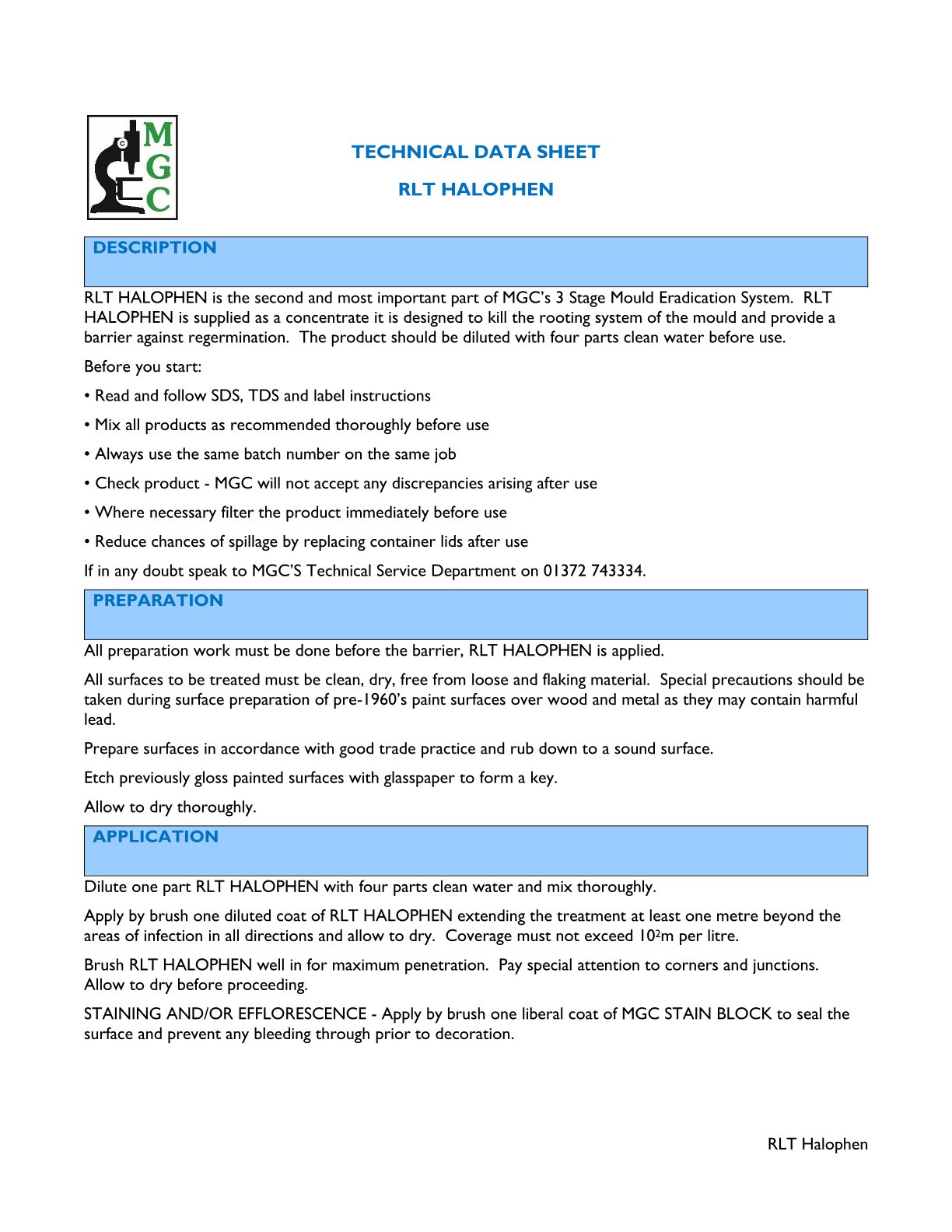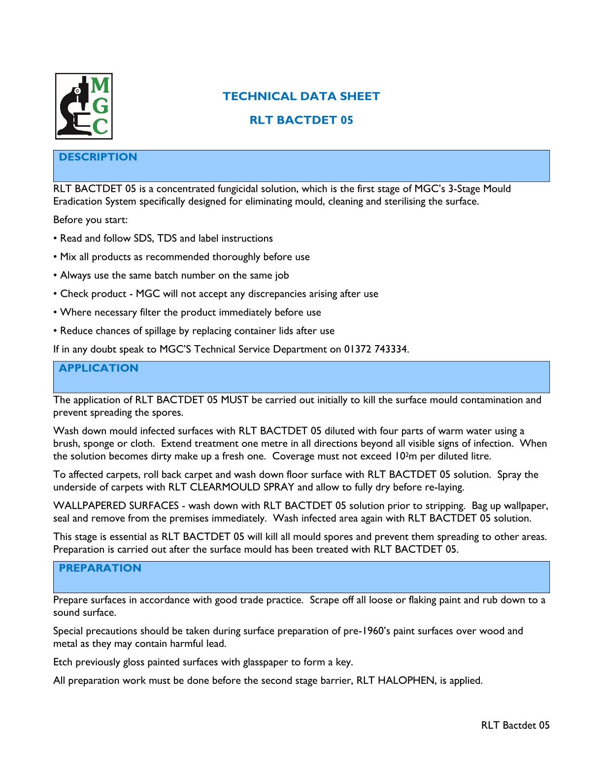 The BIOCHECK BB PACK is a 3 stage system and also contains 200 mls of RLT BACTDET 05 and 200 mls of RLT Halophen which is used to kill and clean the mould growth off the contaminated surfaces. Dilute at 1:4 with warm water and apply by brush, cloth or sponge.