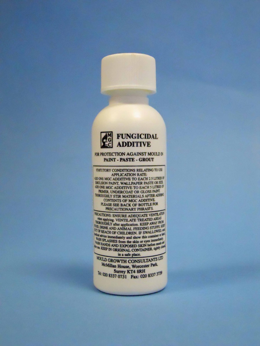 MGC FUNGICIDAL ADDITIVES The MGC MGC FUNGICIDAL ADDITIVES are formulated to protect the decoration from mould attack. Can be incorporated into emulsion paint, gloss paint, primers, undercoats, size, wallpaper paste and grout.